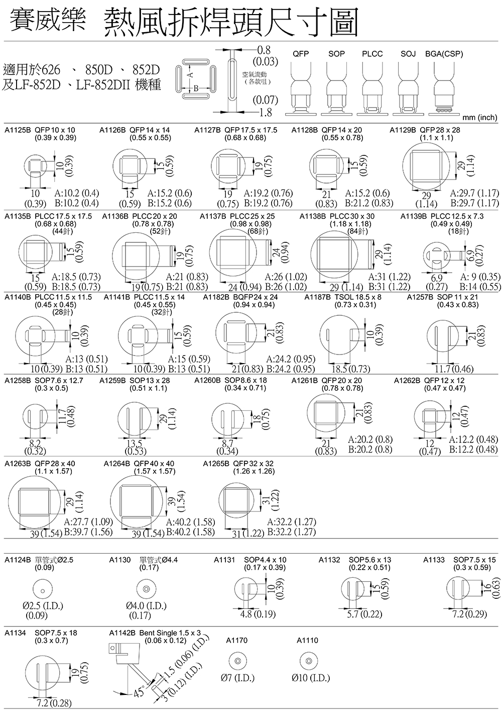 熱風拆焊頭尺寸圖